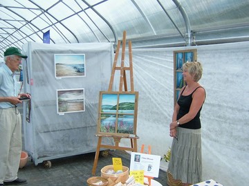 Cina i samtal med en av de övriga utställarna i Växthus 10 vid Tyresö Slott.